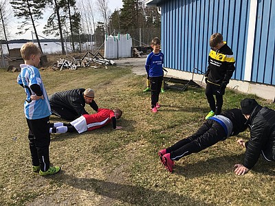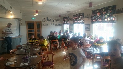 Efter en god frukost (tack "kökspersonalen") så hade vi en förmiddagsträning där vi hade några grenar i "Mästarens Mästare". Dels så var det att man skulle lyckas med att träffa ribban/stolpen från 10 meter med 5 försök. Några lyckades med 3 träffar vilket var högsta resultatet, vi hade även en löptävling över 11-manna planen där jag tror vi hade 4 killar på samma snabbast tid.
