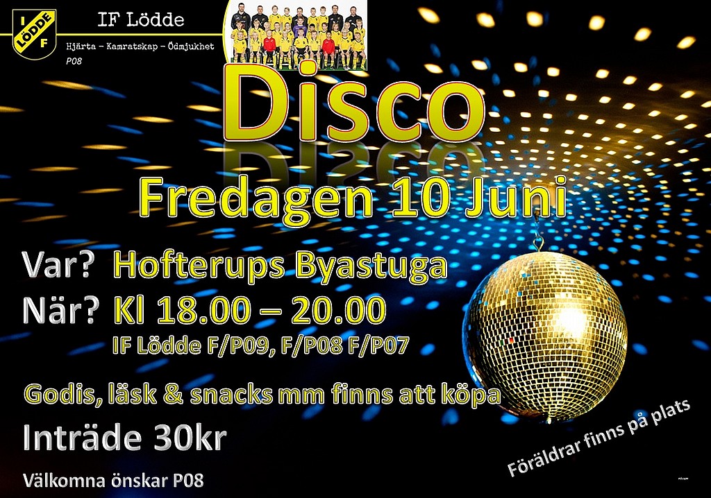 Vi har fått en disco-inbjudan av P-08! Maila till oss på iflodde.p09@gmail.com för att anmäla ert barn.