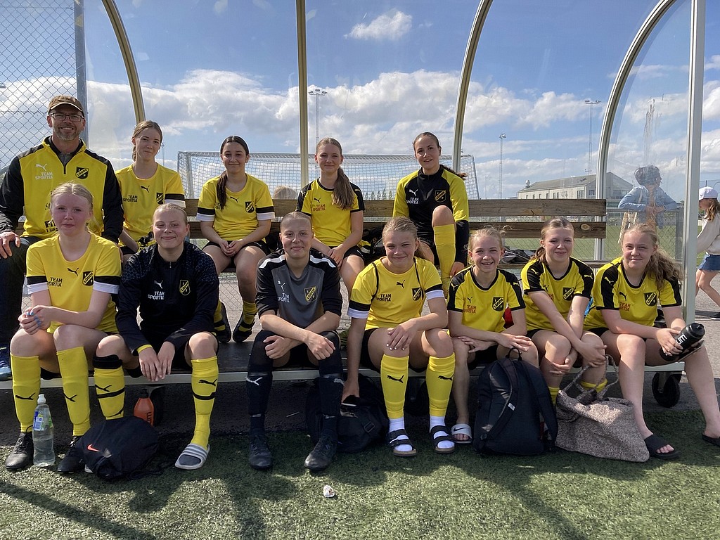 Vi kommer ut lite svagt i andra även om vi för spelet, men efter tio minuter tar vi över mer och mer. Passningsspelet blir bättre och vi kommer runt på kanterna. Vi får ytterligare en hörna och återigen är det Rijaldas fot som trycker in bollen från mycket nära håll! 3-0, lysande! Det går inte många minuter innan Rijalda har ett vasst avslut inne i straffområdet igen. Det ska egentligen vara hattrick här, men målvakten gör en reflexräddning med högerfoten. Kort senare dyker det upp ett nytt läge i straffområdet där Nicole håller sig framme och trycke upp bollen hårt i nättaket. Otagbart. 4-0. Vi fortsätter att anfalla med flera spelsekvenser med bra passningsspel. Vårt femte mål kommer efter bra passningsspel där Ellen till slut kommer runt på högerkanten och slår får kortlinjen ett perfekt inlägg över försvaret där Emma behärskat plockar ner bollen och distinkt dunkar in den. Dagens anfall. 5-0!