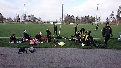 Dagens första fotbollspass efter frukost och morgonlöpning.