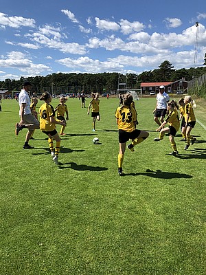 Så var Hällevik Cupen slut. En härlig Cup med många tuffa och roliga matcher. Tjejerna var och är grymma. Trotts värmen och svårt motstånd stod våra tappra spelare emot och gjorde många fina matcher. Med grym fightingspirit så avslutade vi Cupen med flaggan i topp. Avgjorde i slutet med ett typiskt ” bollen ska bara in” i slut minuten. Under Cupens tre dagar fick chansen att möte både lag ifrån Småland, Blekinge & Gotland.