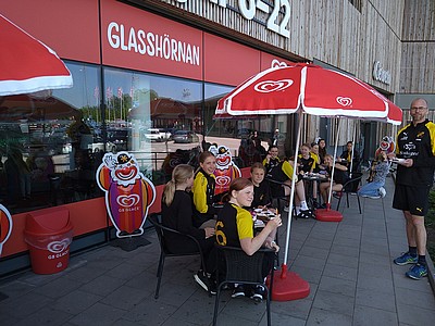 Först löpning sen lite styrka därefter burgare och sen avslutning med glasstårta.