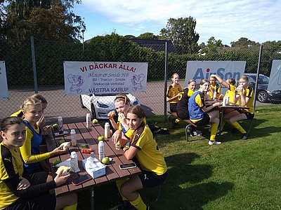 Vi började med match borta mot Västra Karup, därefter träning och sen lunch. Transport till hotell i Helsingborg och ombyte till gymkläder, ny träning och sen ett dopp i poolen.