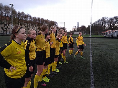 Första matchen i Vinterserien, 11mot11 i Malmö. Spelmässigt en jämn match som slutade 2-2. Tjejerna kämpade på i sol/snöblandat regn och verkade ha kul.