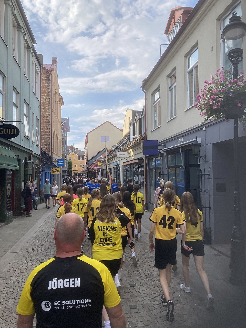 Vi deltog i paraden i strålande sol och 29 graders värme från Stadsparken till Slottshagen. Mycket trevligt! Där blev det invigning med inslag av störtskurar, 80-tals rock, paradmusik och godisregn. Våra tjejer höll sig väl framme vid scenen. Vassast i godisjakten var tveklöst Annabell.
