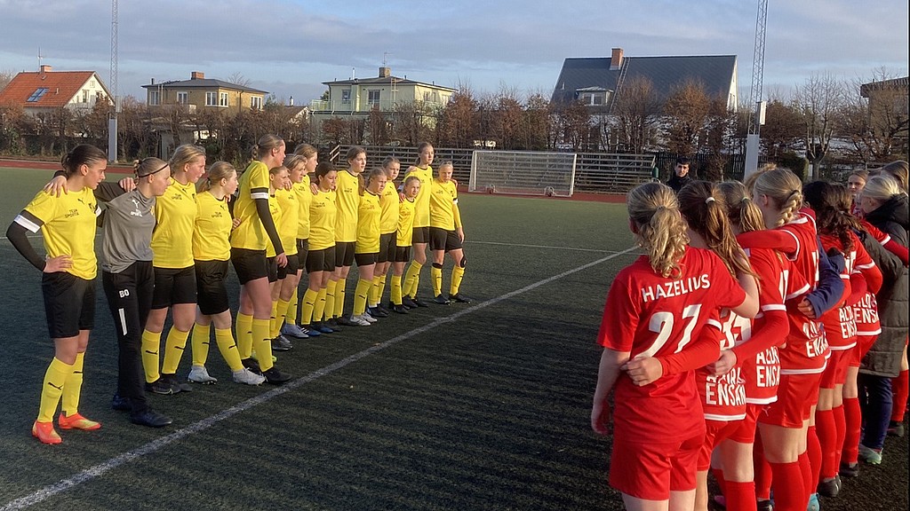 Vårt 07/08-lag var för dagen förstärkt med 09:orna Emma, Molly och Ellen. Vi kommer ut taggade och spelet är jämnt. Vi försvarar oss bra och det skapas lägen åt båda håll. Vi drabbas tyvärr av ett tråkigt baklängesmål en bit in i första halvlek. Våra försvarsspelare och den bollförande Nike-spelaren tror att bollen är över kortlinjen i straffområdet och slutar spela. Domaren är av en annan åsikt, spelet fortgår och bollen hamnar i mål. Segt. Vi får ta med oss att vi måste spela tills domaren blåser.