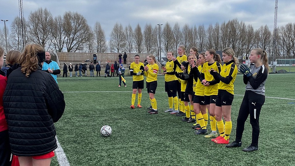 Vi vet att detta kommer att bli en tuff match och kommer ut taggade i första halvlek. Dösjöbro inleder med ett bra passningsspel och lyckas på så sätt komma igenom vårt försvar några gånger och skapa farligheter framför Bea i målet. 0-1-målet kommer till på så vis. De sätter hög press på oss i vår uppspelsfas och lyckas sno åt sig bollen mitt i banan vid ett tillfälle tack vare detta och får in 0-2-målet. Efter detta lyfter vi oss. Vi ligger närmare dem när vi försvarar och får bättre koll på deras löpningar. Vårt passningspel blir också bättre och bättre. En riktigt bra sekvens från vår sida med bra passningspel leder fram till Ellen André som tar ett hårt avslut från distans. 1-2. Härligt!