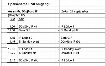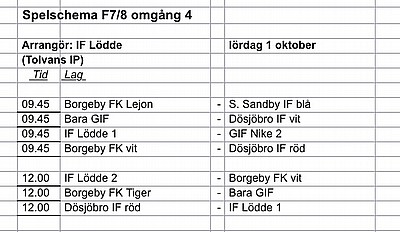 Här är spelschema och spelplatser för höstens fyra omgångar i knattespelen. Notera att vi, liksom under våravslutningen, är ansvariga för en av kioskerna den 1 oktober under höstavslutningen i Lödde. Vi räknar med att samtliga föräldrar kan ställa upp under ett par timmar då.